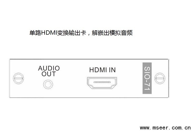 SIO-71 HDMI單通道變換輸出卡,配合SMD主機使用,采用獨立板卡設計,每塊卡支持1路HDMI輸出,解嵌出模擬音頻,支持最高1920x1200P60的數字高清圖像傳輸.