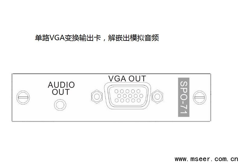 SRO-71 VGA單通道變換輸出卡,配合SMD主機(jī)使用,采用獨立板卡設(shè)計,每塊卡支持1路VGA輸出,解嵌出模擬音頻,支持最高1920x1200P60的高清圖像傳輸.