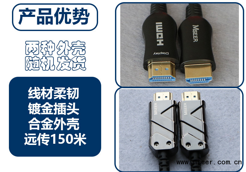 HDMI光纖線具有較好的抗電磁和射頻干擾。相較于傳統銅纜,光纖HDMI線具有傳輸更長、更細、更軟、信號質量更高的特點,產品可在具有挑戰性的環境下穩定、可靠的工作。