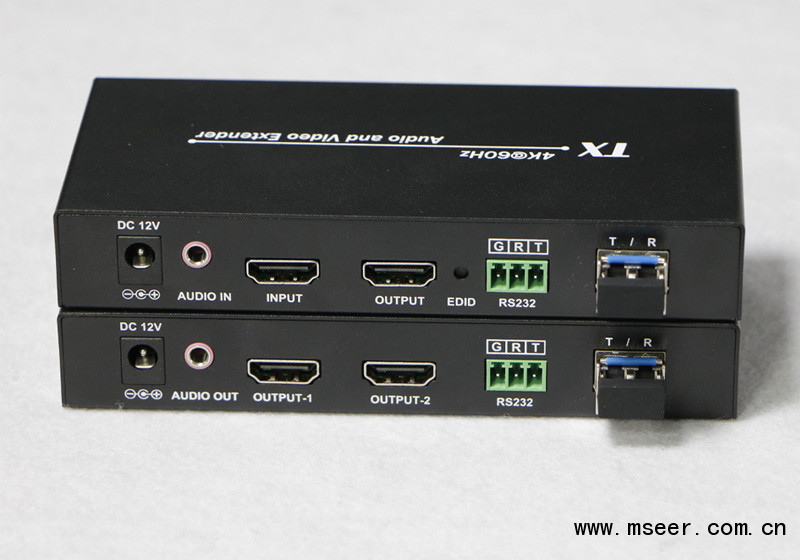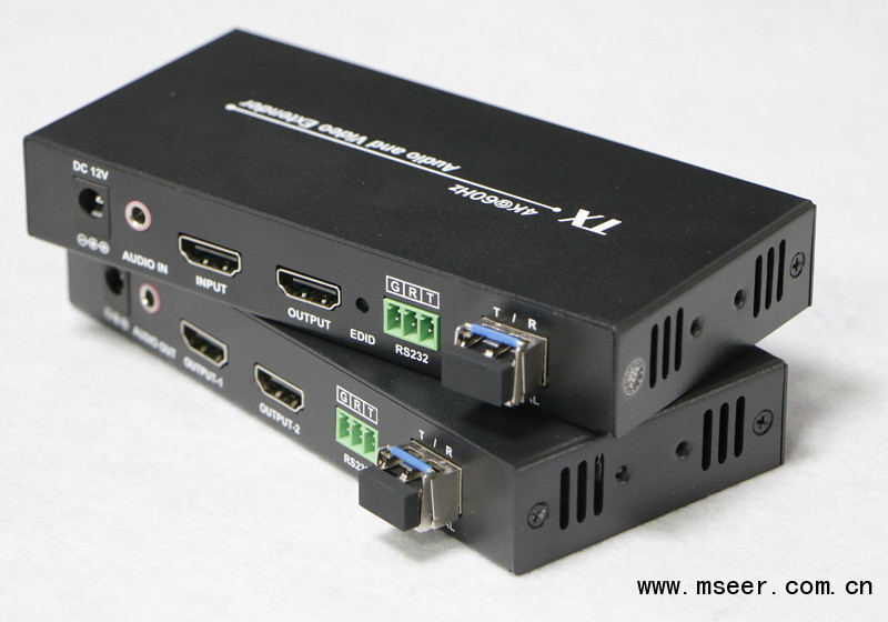 此光纖延長(zhǎng)器是用于延長(zhǎng)傳輸HDMI音視頻信號(hào)的設(shè)備,通常在HDMI線(xiàn)極限長(zhǎng)度無(wú)法滿(mǎn)足傳輸距離的情況使用。本產(chǎn)品是通過(guò)萬(wàn)兆光纖將最高分辨率為3840*2160@60Hz的HDMI高清音視頻信號(hào)無(wú)壓縮傳輸標(biāo)配10KM,本產(chǎn)品支持RS232串口數(shù)據(jù)透?jìng)鳎?dú)立音頻傳輸,支持本地環(huán)出,在為用戶(hù)降低成本的同時(shí)保證信號(hào)的穩(wěn)定。延長(zhǎng)器內(nèi)置學(xué)習(xí)EDID極大的提升了設(shè)備的兼容性。該設(shè)備具有傳輸距離遠(yuǎn)、使用成本低、安裝方便、兼容性好、是一種穩(wěn)定高效的傳輸方式,廣泛應(yīng)用于高清會(huì)議系統(tǒng),高清影視拍攝,高清教學(xué)系統(tǒng),高清數(shù)字廣告等的音視頻傳輸。